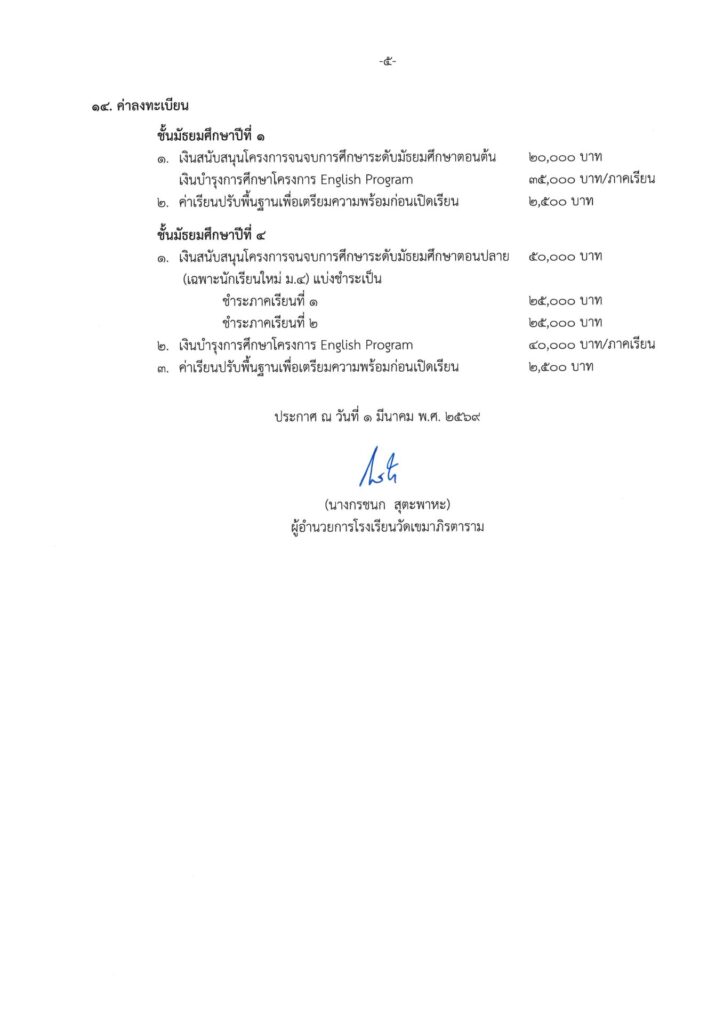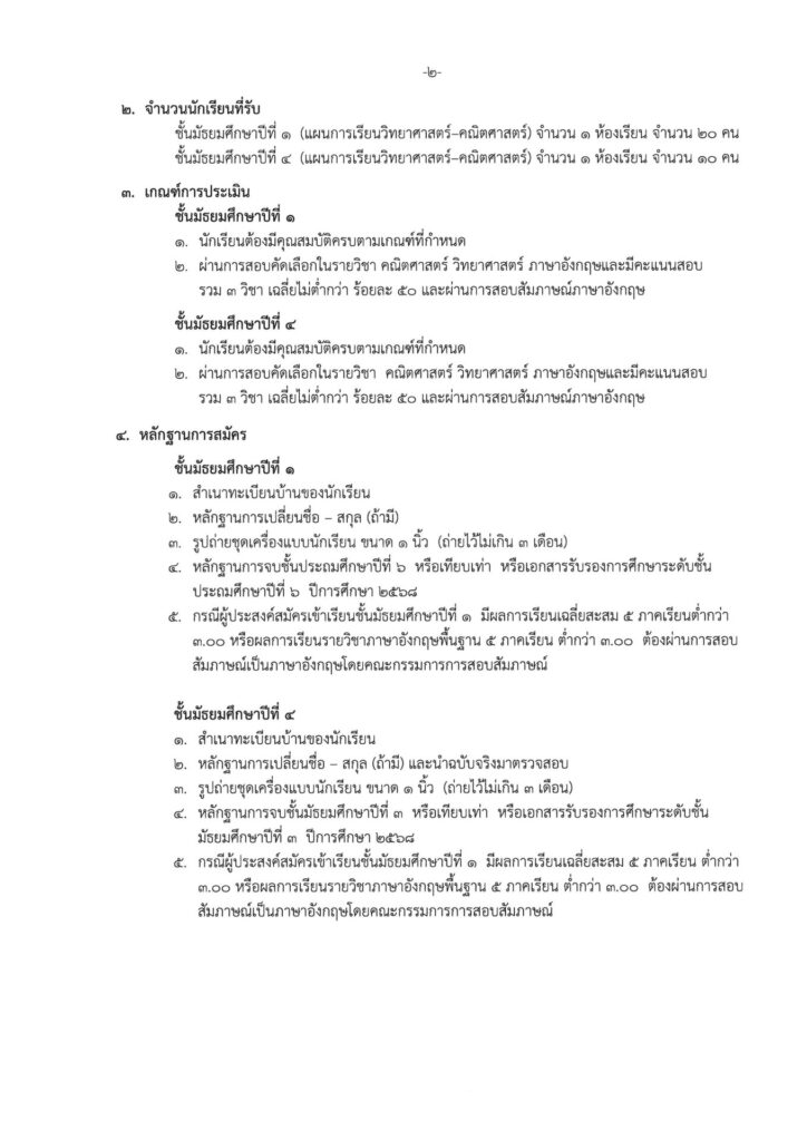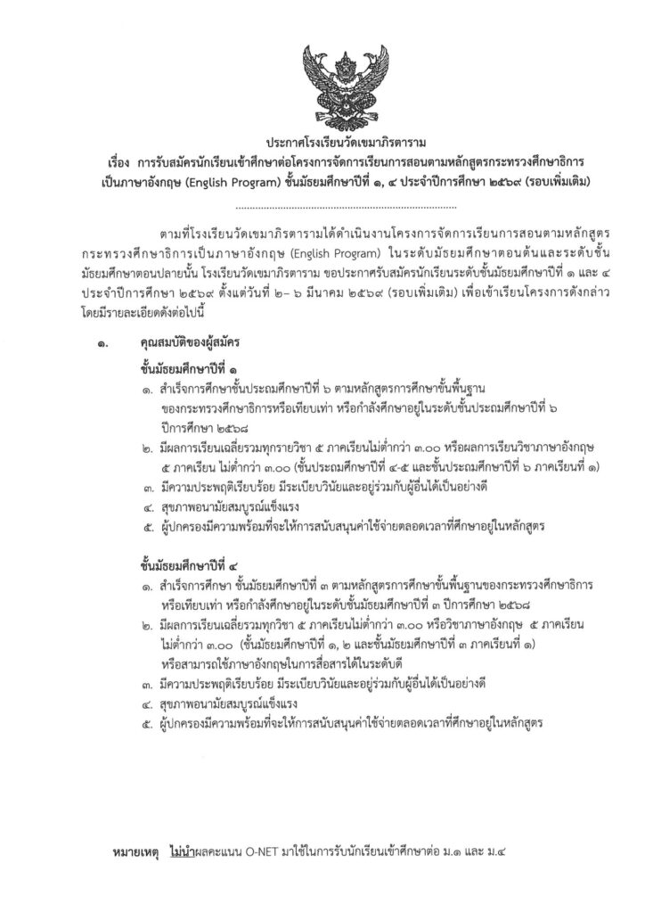 ประกาศรับสมัครนักเรียน โครงการพิเศษภาคภาษาอังกฤษ รอบ 2 ปีการศึกษา 2569