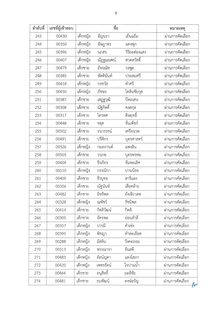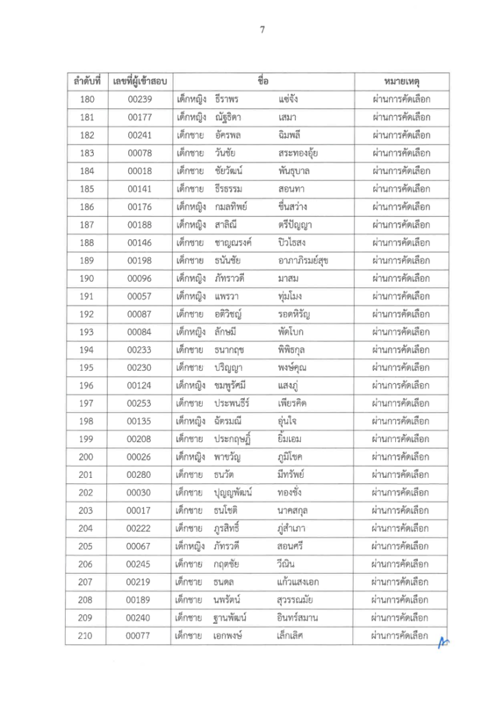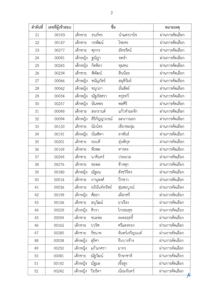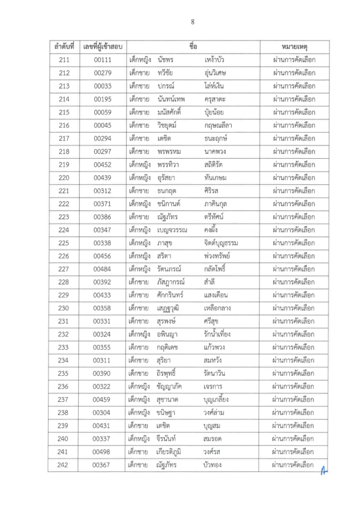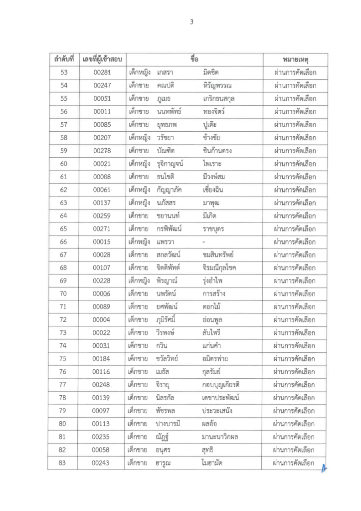 ประกาศผลสอบคัดเลือกนักเรียนเข้าศึกษาต่อ ระดับชั้นมัธยมศึกษาปีที่ 1 ปีการศึกษา 2567