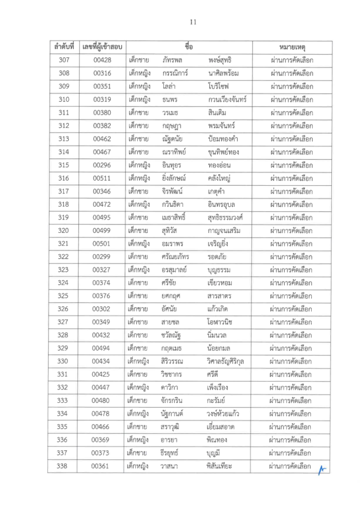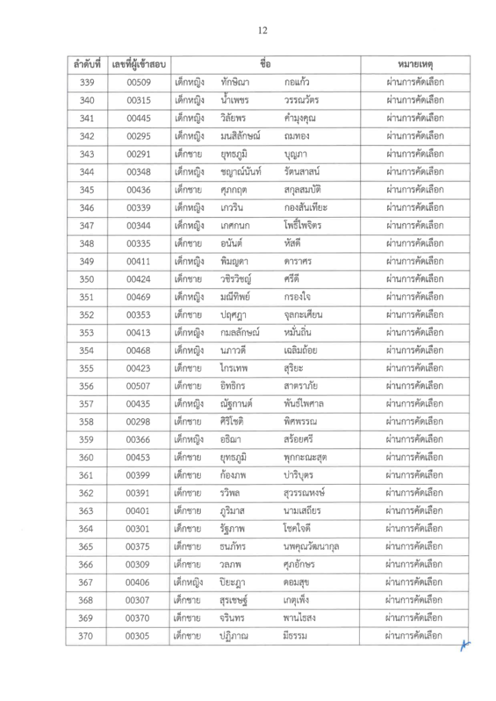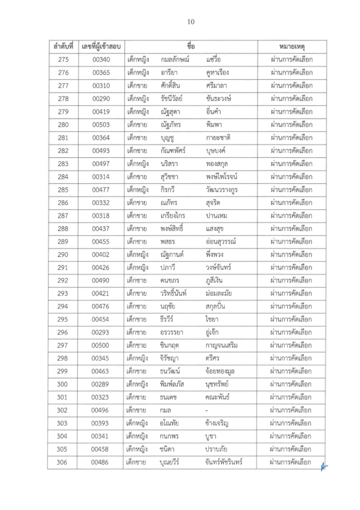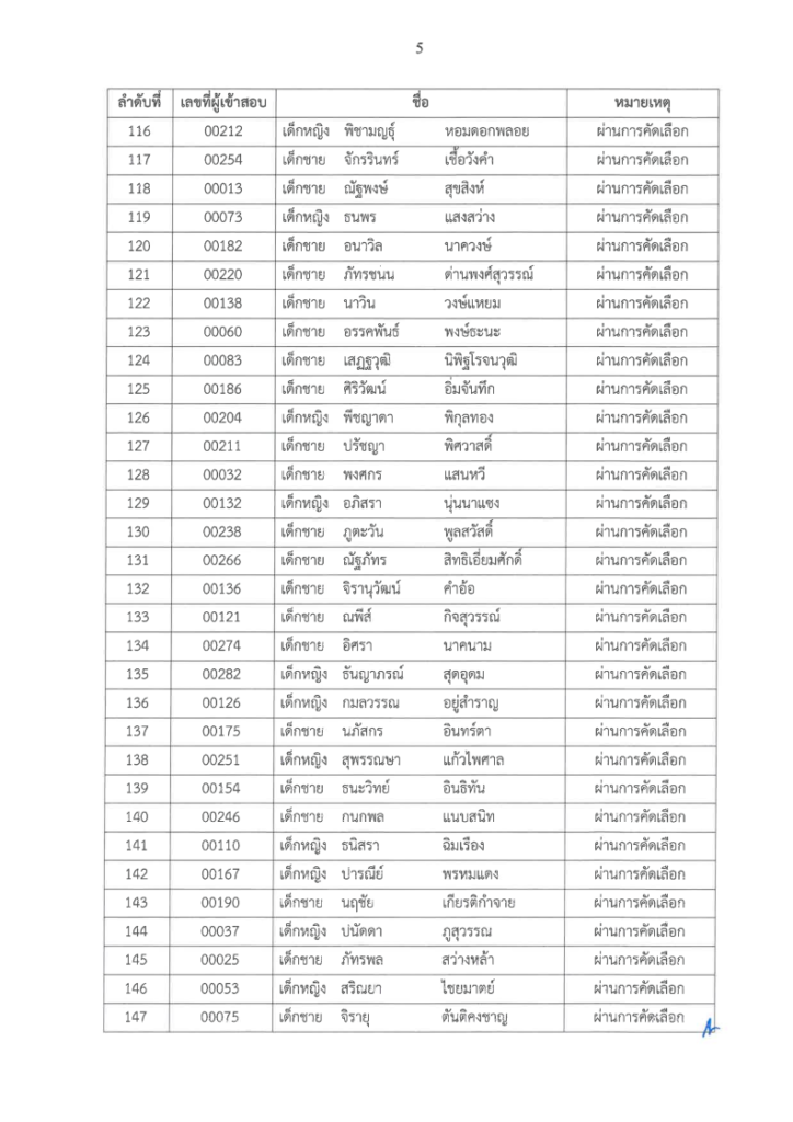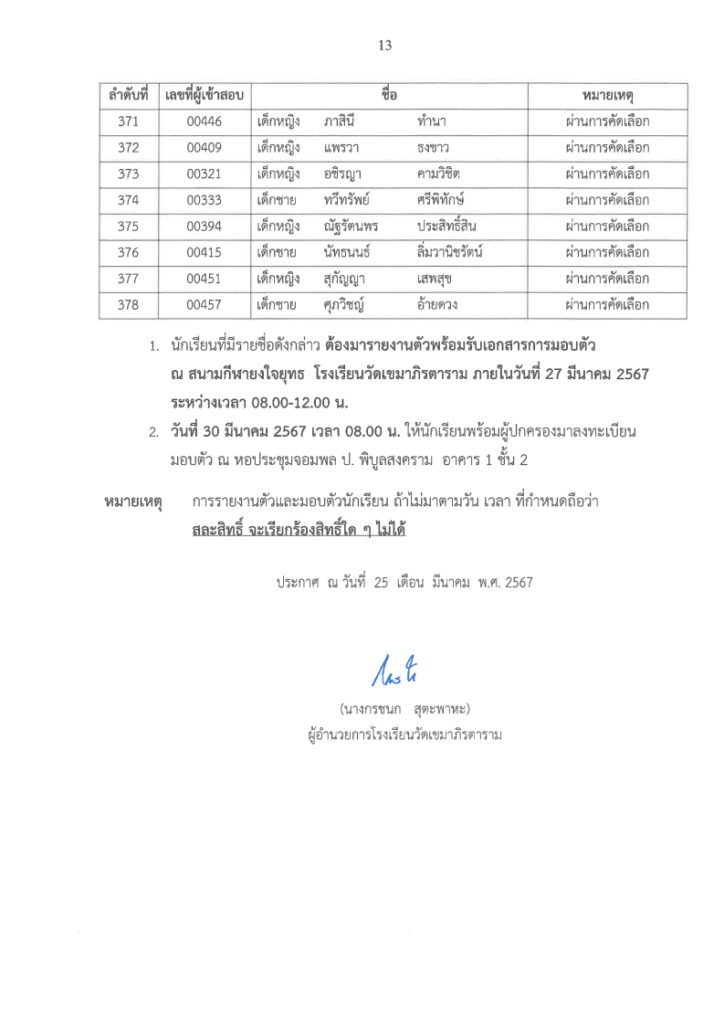 ประกาศผลสอบคัดเลือกนักเรียนเข้าศึกษาต่อ ระดับชั้นมัธยมศึกษาปีที่ 1 ปีการศึกษา 2567