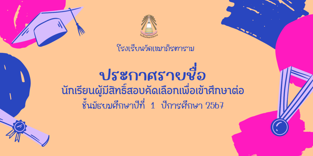 ประกาศรายชื่อนักเรียนผู้มีสิทธิ์ สอบคัดเลือกเพื่อเข้าศึกษาต่อ ระดับชั้นมัธยมศึกษาปีที่ 1 ปีการศึกษา 2567