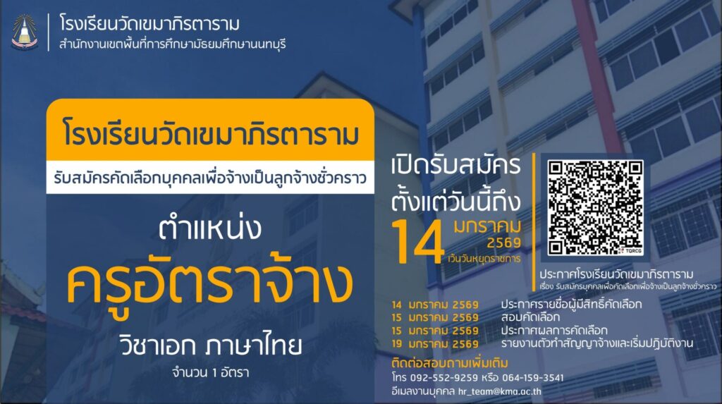 รับสมัครคัดเลือกบุคคลเพื่อจ้างเป็นลูกจ้างชั่วคราว ตำแหน่ง ครูอัตราจ้าง วิชาเอกภาษาไทย จำนวน 1 อัตรา