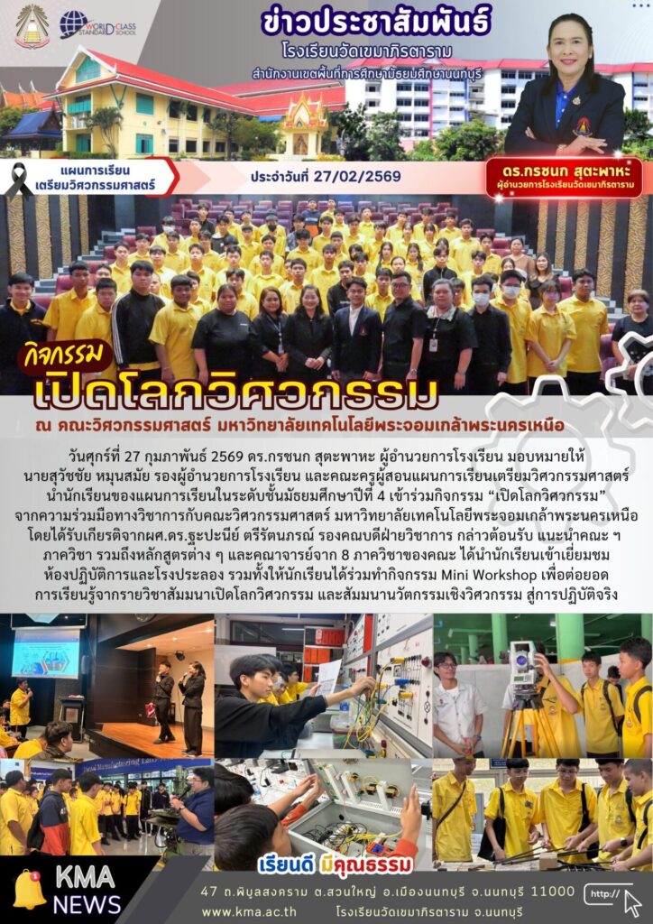 แผนการเรียนเตรียมวิศวกรรมศาสตร์ จัดกิจกรรม “เปิดโลกวิศวกรรม” ณ คณะวิศวกรรมศาสตร์ มจพ.